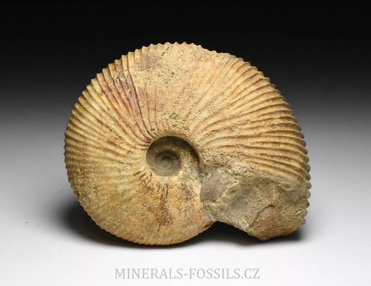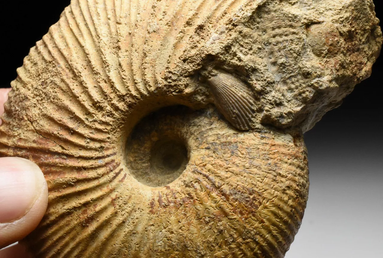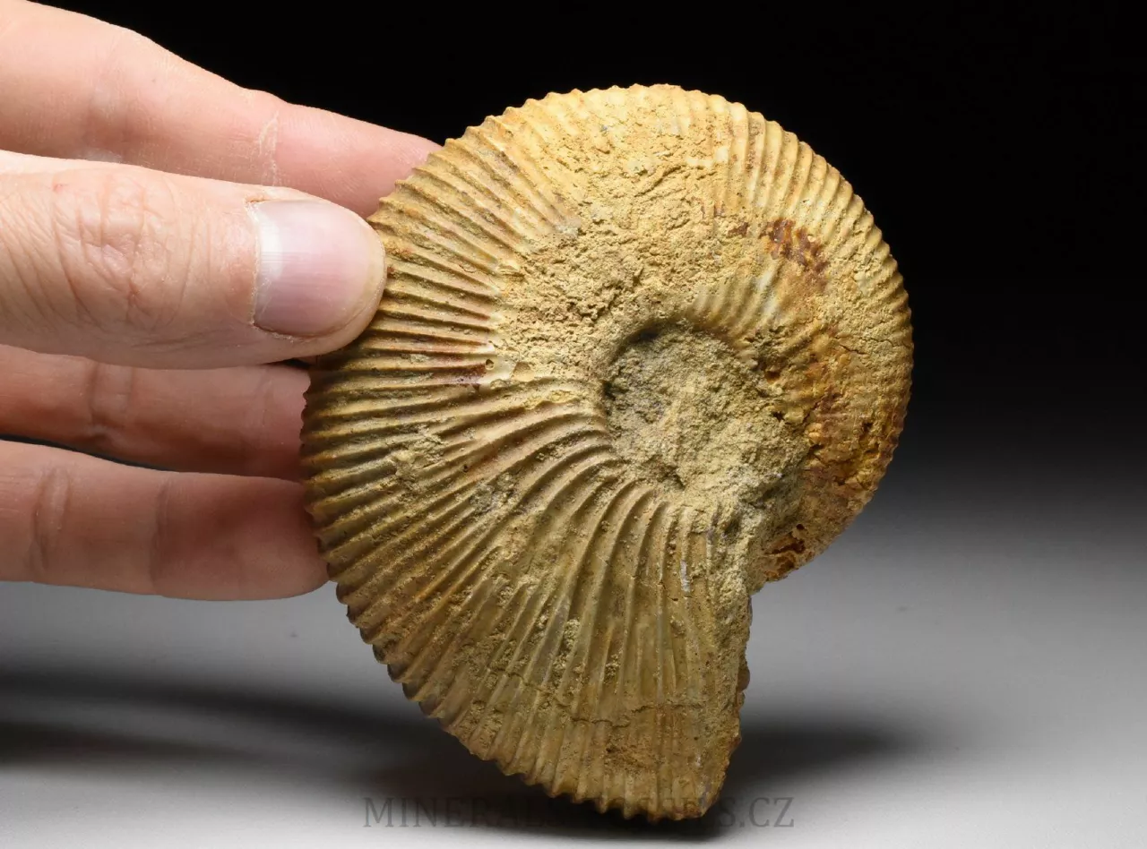 Zkamenělina amonita rodu Macrocephalites madagascariensis ze Švýcarské lokality Anwil. Tento amonit s robustní jemně žebrovanou schránkou je zachovalý v tvrdém písčitém vápenci okrové barvy. Schránka amonita je trojrozměrně zachovalá, bez diagenetické deformace (zkamenělina tak má původní tvar jako v životní podobě). Amonit má z jedné strany velmi dobře zachovalý a viditelný střed (ten často bývá trošku problém při preparaci), na kousku horniny najdeme i zbytky fosliních mlžů (zřejmě Lima sp. a částečný otisk Trigonia sp.). Vzhledem k lokalitě nálezu se jedná o sběratelsky cenný kus. Jakékoliv fosílie ze Švýcarska jsou vzhledem ke stavu lokalit a legislativě ochrany přírody velmi ceněné a nedostupné. Vzorek pochází ze staré sbírky sbírané cca od roku 1950.