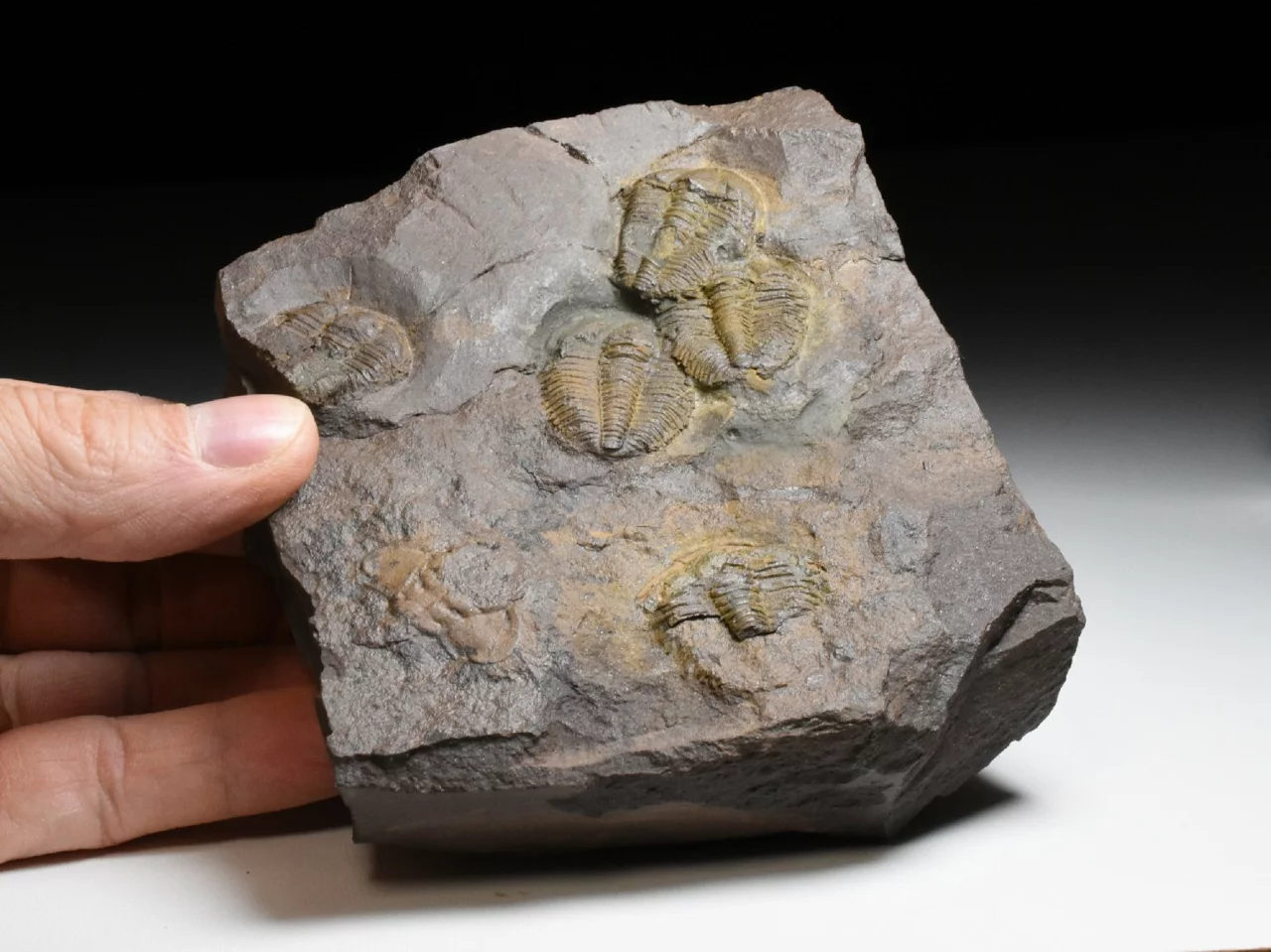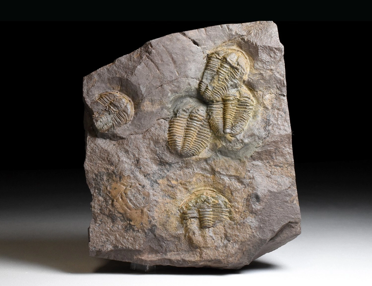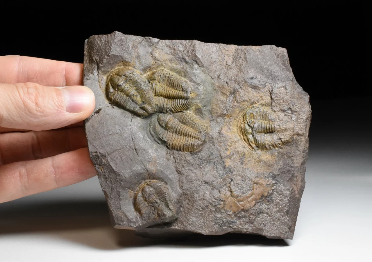 Zkamenělina trilobitů rodu Conocoryphe cirina z naleziště v okolí obce Rejkovice. Na tomto hranatém kameni o rozměru 12 x 10 x 3 cm najdeme několik jedinců tohoto trilobita (celkem 5 jedinců), kteří jsou seřazení ve frontě jeden za druhým. Trilobiti nejsou úplně dobře zachovalí (byť byli původně všichni kompletní), dosahují velikosti až 3 cm. Kámen je prasklý a lepený, v horní části na silnější destičku navazuje tenká destička (tento rizikový spoj je ze zadní strany vyztužen).