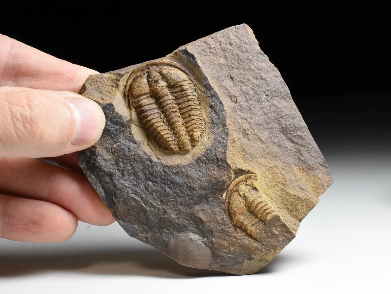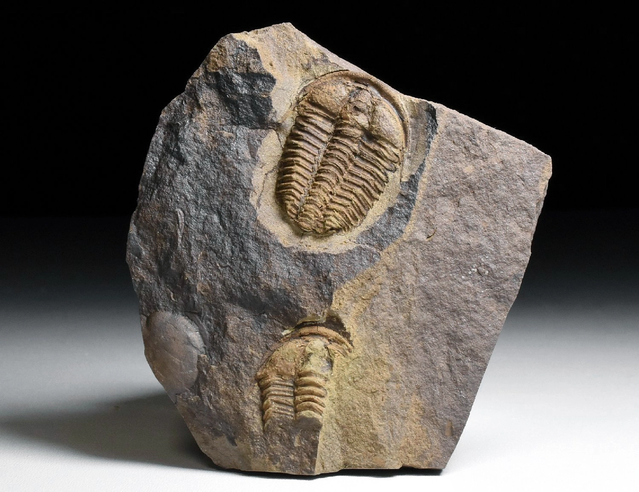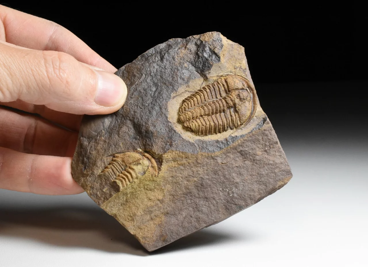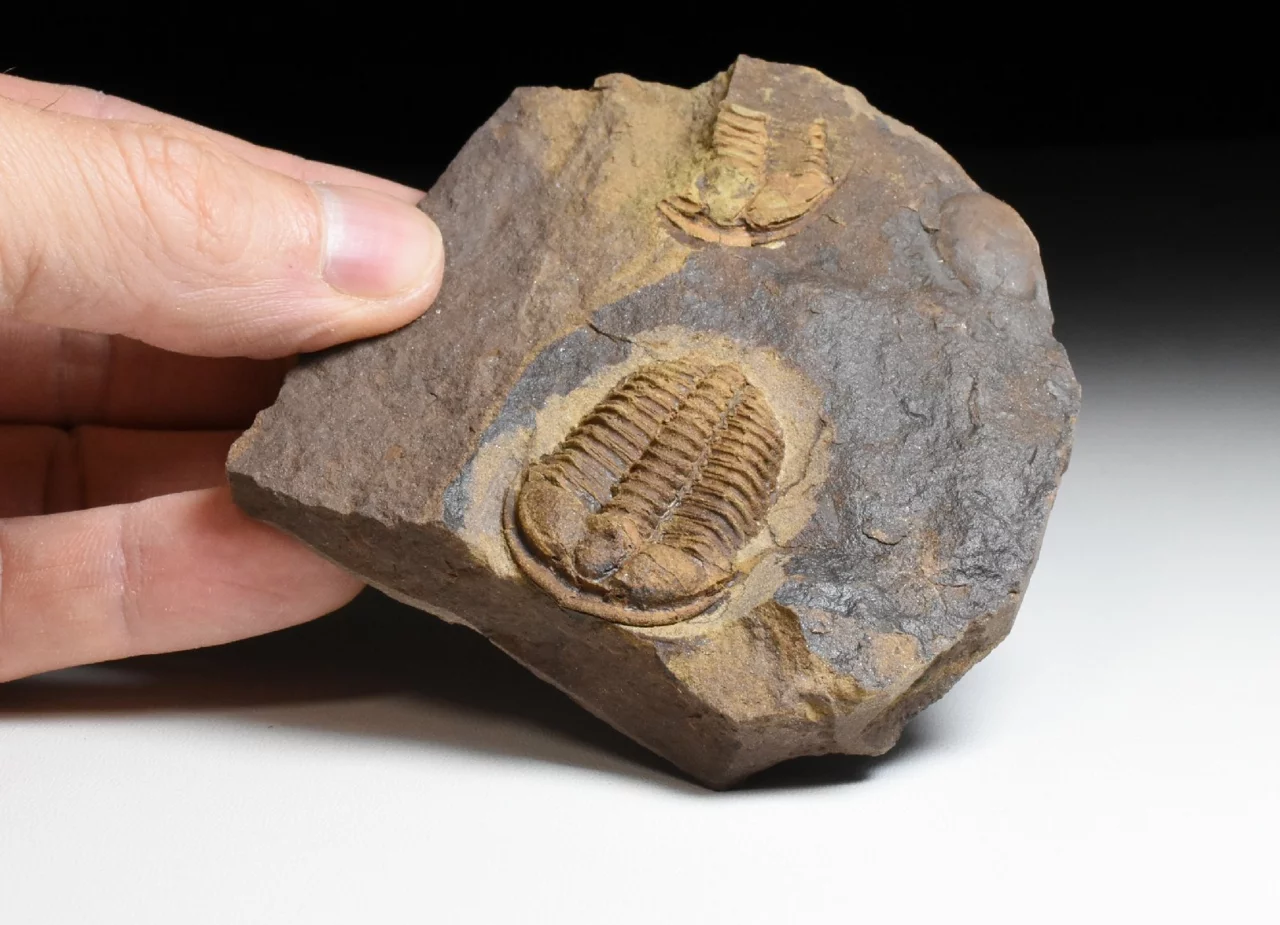 Zkamenělina trilobita rodu Conocoryphe cirina z nalezišťe v okolí obce Rejkovice. Tento 3,5 cm velký jedinec má dobře zachovalý hlavový štít s nepoškozeným hrabavým lemem, oběma lícními trny a místy na glabele i s dobře čitelnou granulací (jemná granulace na glabele a pleurách jsou určujícím znakem druhu C. cirina). Trilobit je kompletní, ale jeho pygidium je ohnuté (podtotčené) pod tělo, takže není vidět. Celkové rozměry kamene jsou 9 x 8 x 1,5 cm. Na kameni najdeme zbytek dalšího jedince C.cirina a část hlavového štítu patřící rodu Acadoparadoxides.