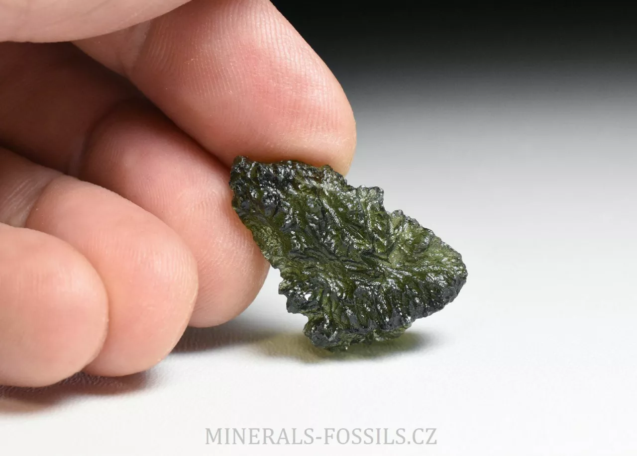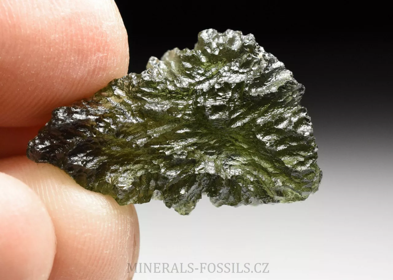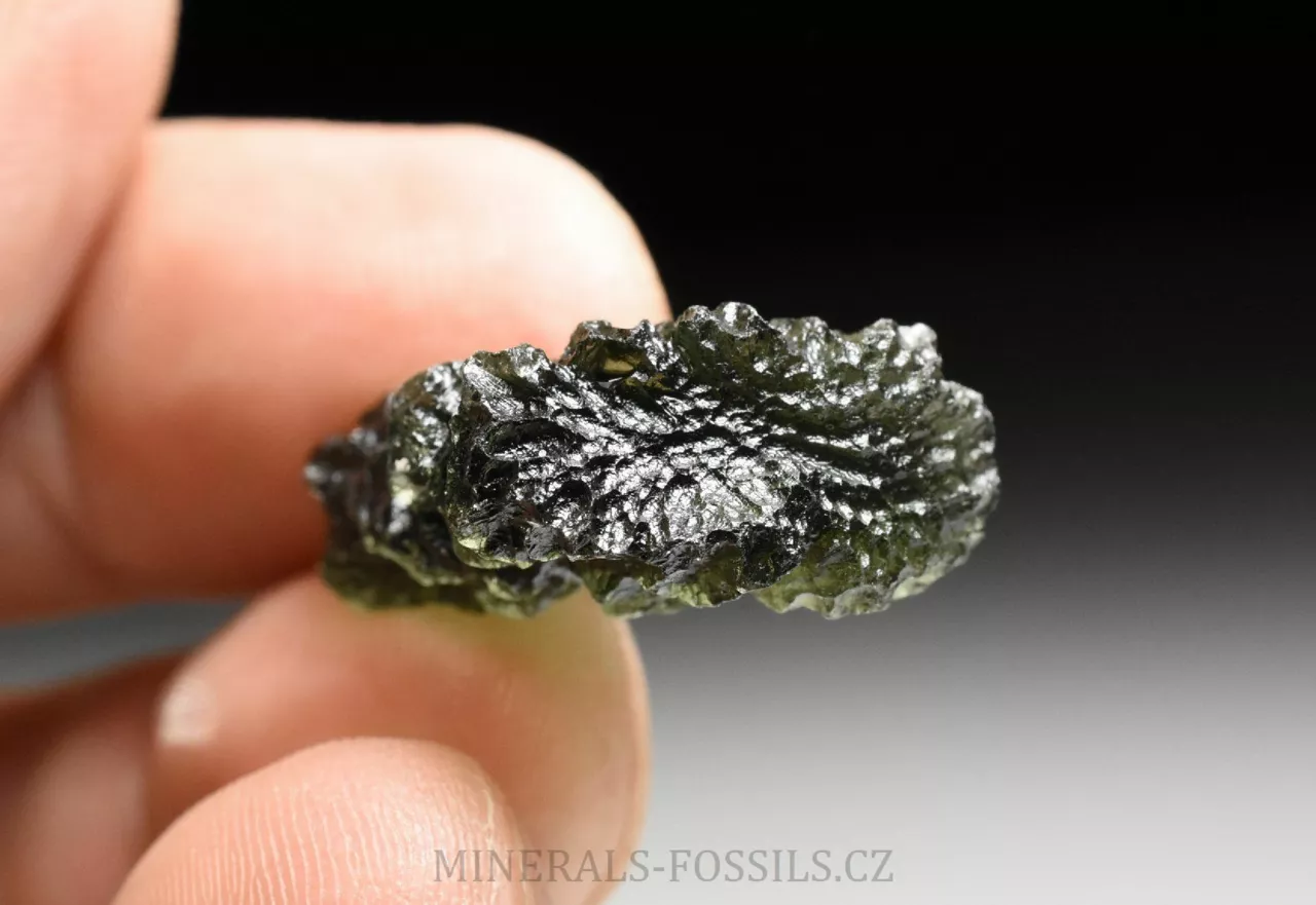 Pěkný hluboce skulptovaný vltavín z lokality Dobrkovská Lhota "Parýz". Tento malý vltavínek má tvar tlustšího trojúhelníku, jeho barva je klasicky lahvově zelená a povrch má zhruba střední až lehce vyšší úroveň lesku (má již slabý náznak tzv. "lakového lesku"). Přesné rozměry tohoto vltavínu jsou 2,8 x 1,8 x 0,8 cm a váží 4,46 g. Kámen je ve velmi dobrém stavu, našli bychom na něm pouze zcela nepatrná poškození menší něž 1mm (asi jako na každém vltavínu). Pěkný kousek vhodný i do šperku.