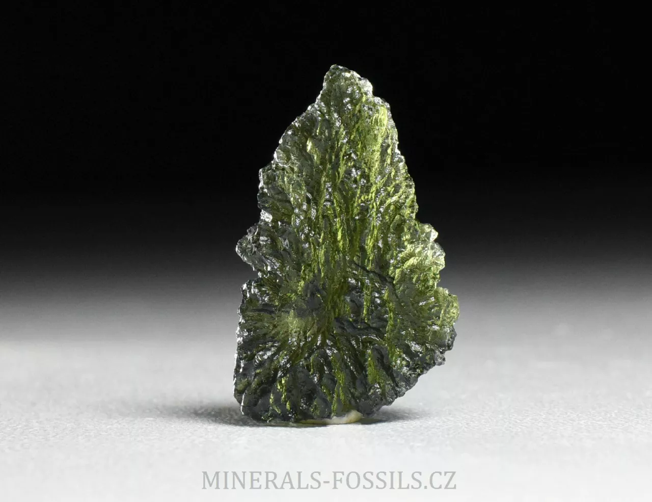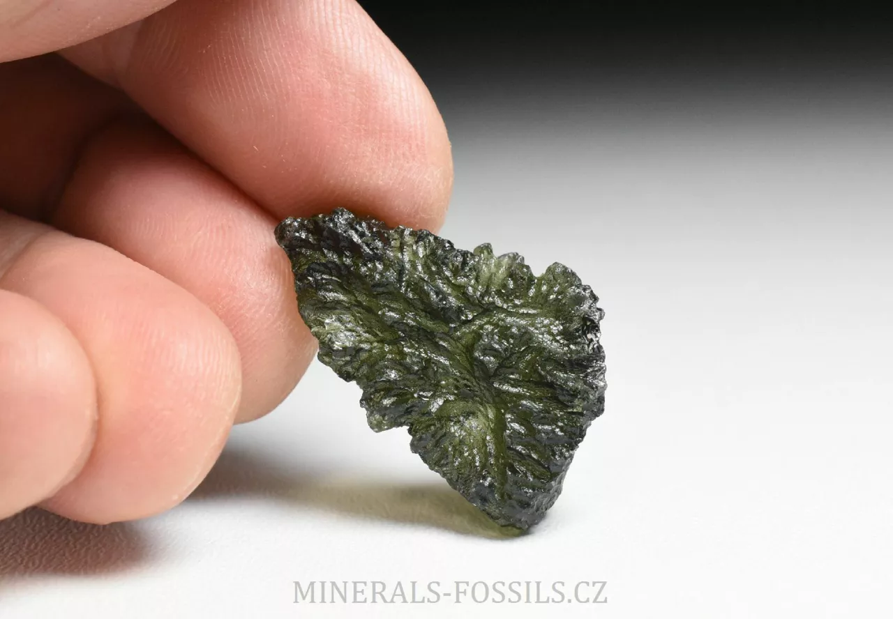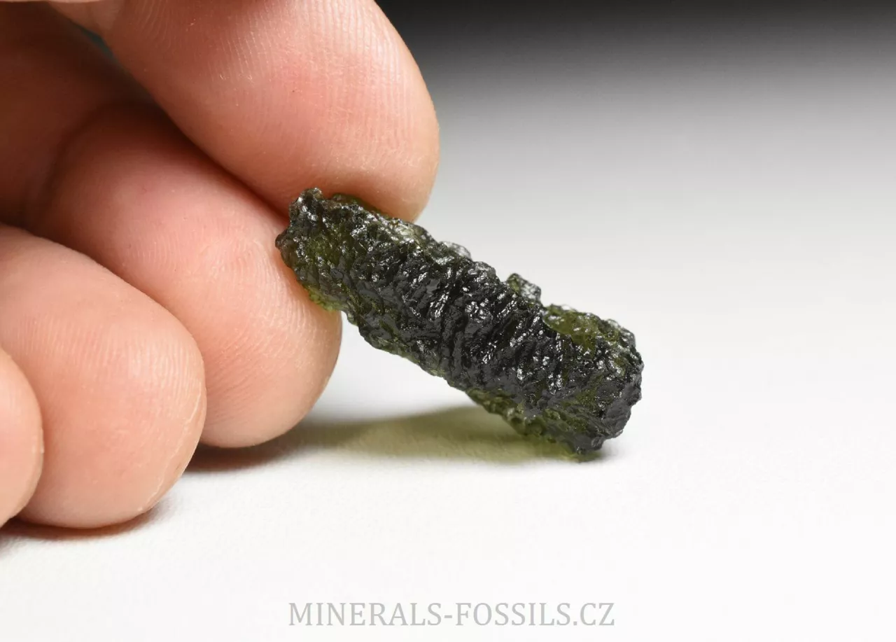 Pěkný hluboce skulptovaný vltavín z lokality Dobrkovská Lhota "Parýz". Tento malý vltavínek má tvar tlustšího trojúhelníku, jeho barva je klasicky lahvově zelená a povrch má zhruba střední až lehce vyšší úroveň lesku (má již slabý náznak tzv. "lakového lesku"). Přesné rozměry tohoto vltavínu jsou 2,8 x 1,8 x 0,8 cm a váží 4,46 g. Kámen je ve velmi dobrém stavu, našli bychom na něm pouze zcela nepatrná poškození menší něž 1mm (asi jako na každém vltavínu). Pěkný kousek vhodný i do šperku.