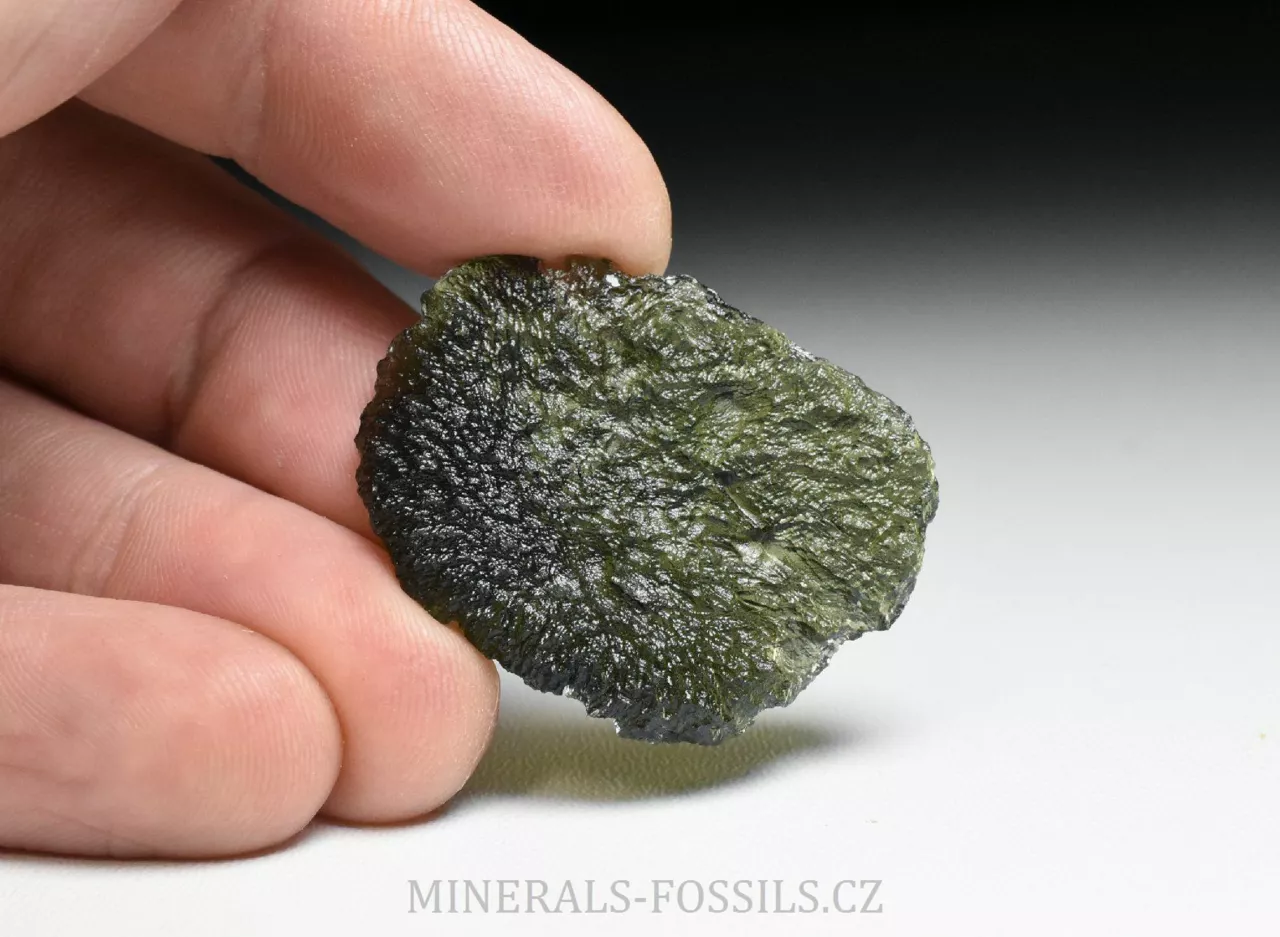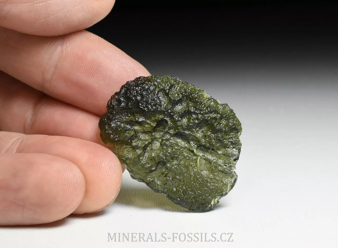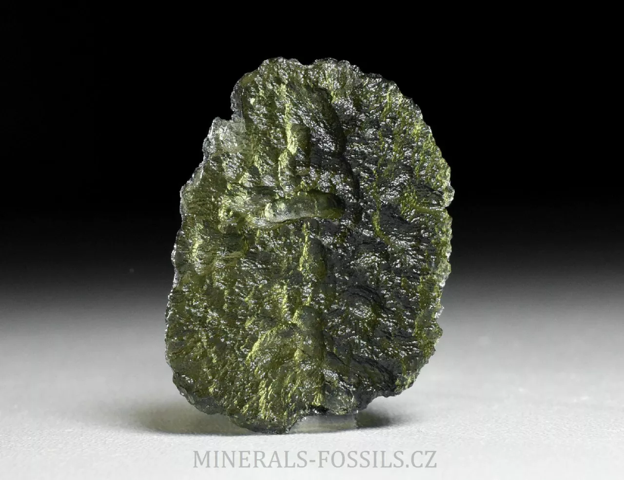 Pěkný vltavín ve velmi dobrém stavu pocházející z lokality Ločenice "pole". Kámen má z pohledové strany tvar nepravidelného oválu a je poměrně plochý. Díky tomu má při své váze 7,84g poměrně velkou plochu - jeho přesné rozměry jsou 3,6 x 2,8 x 0,6 cm. Barva je typicky lahvově zelená, může se zdát mírně světlejší, což je do určité míry dáno jeho malou tloušťkou. Skulptace je neprevidelně důlkovitá ("kráterovaná"), povrch má zhruba střední úroveň lesku. Vltavín je ve velice dobrém stavu, jediné zcela zanebatelné poškození je na okraji, kde je odštíplá ploška cca 1x2mm.
