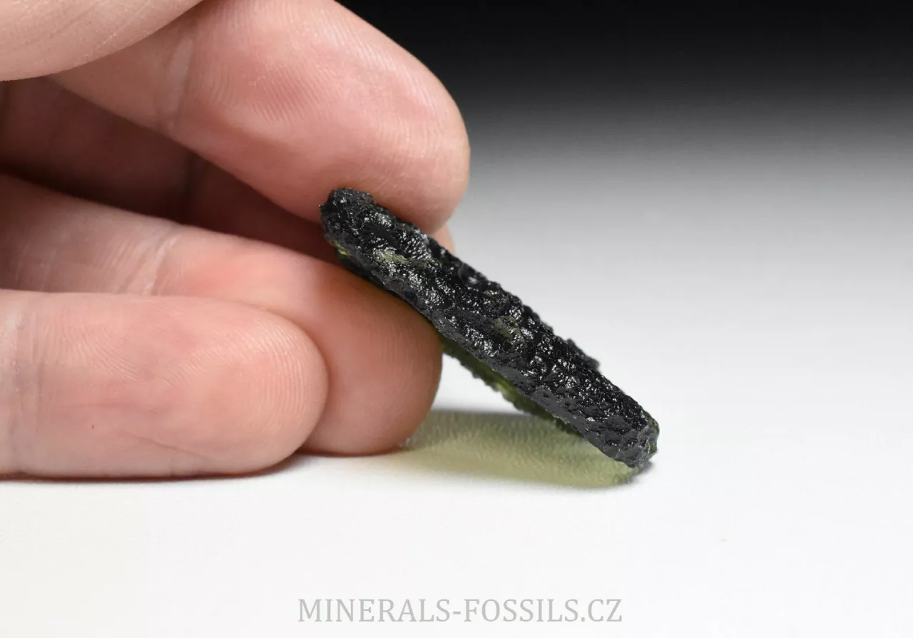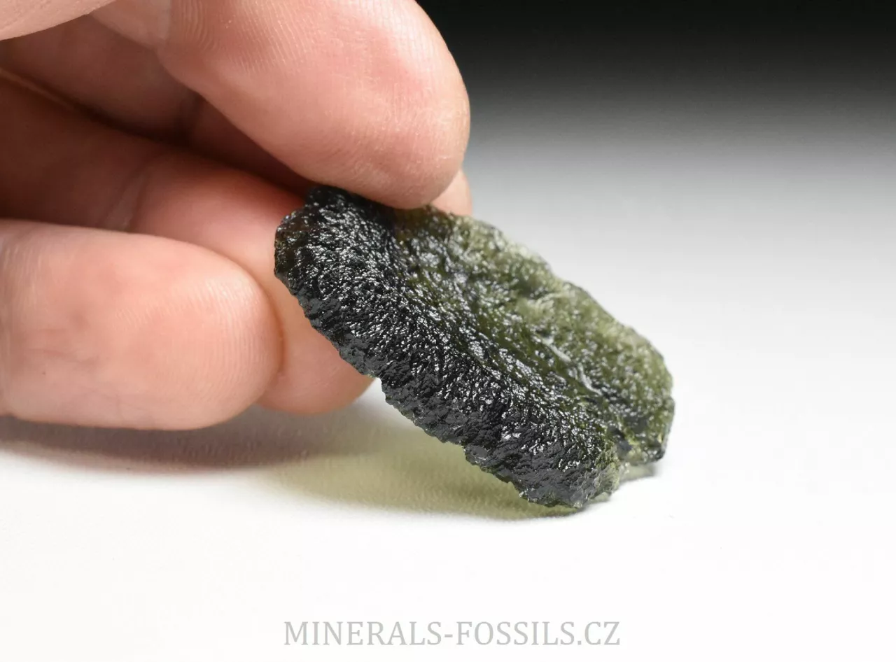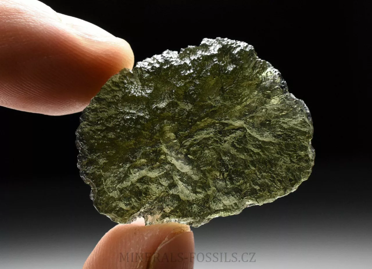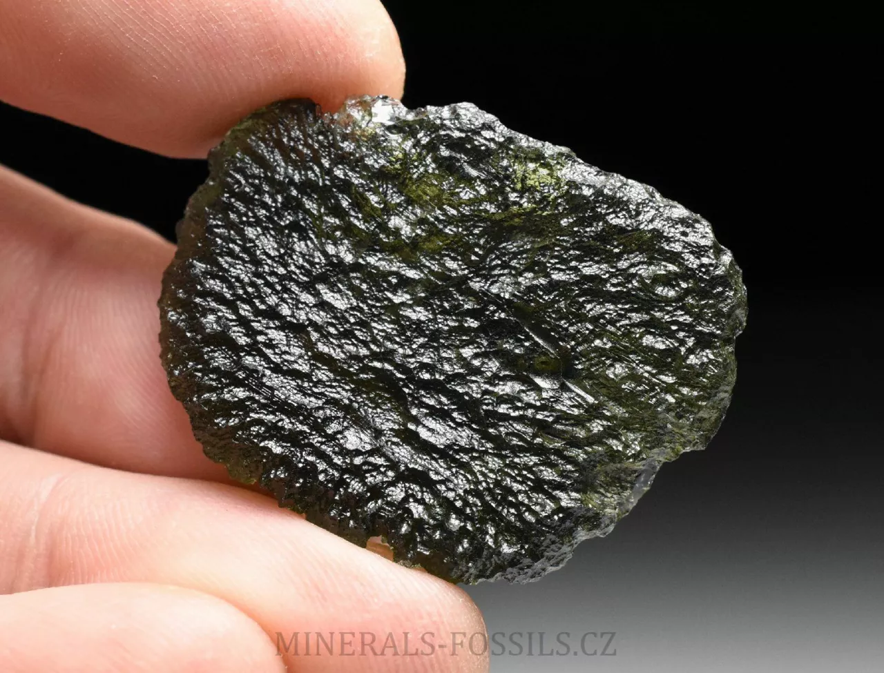 Pěkný vltavín ve velmi dobrém stavu pocházející z lokality Ločenice "pole". Kámen má z pohledové strany tvar nepravidelného oválu a je poměrně plochý. Díky tomu má při své váze 7,84g poměrně velkou plochu - jeho přesné rozměry jsou 3,6 x 2,8 x 0,6 cm. Barva je typicky lahvově zelená, může se zdát mírně světlejší, což je do určité míry dáno jeho malou tloušťkou. Skulptace je neprevidelně důlkovitá ("kráterovaná"), povrch má zhruba střední úroveň lesku. Vltavín je ve velice dobrém stavu, jediné zcela zanebatelné poškození je na okraji, kde je odštíplá ploška cca 1x2mm.