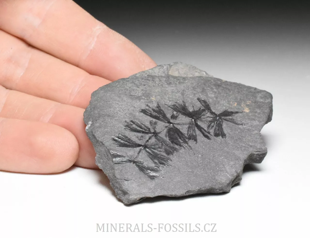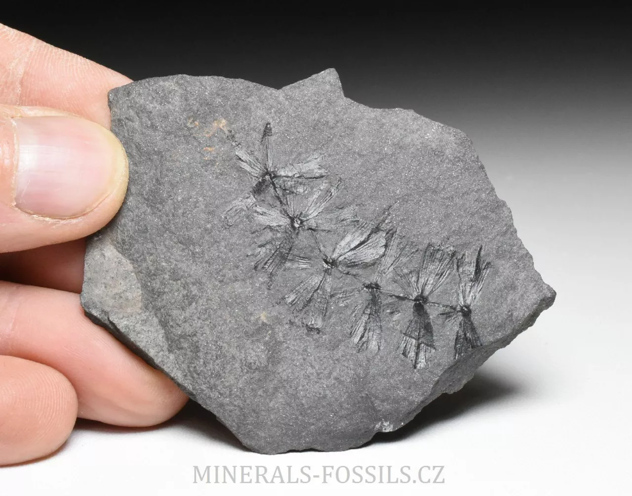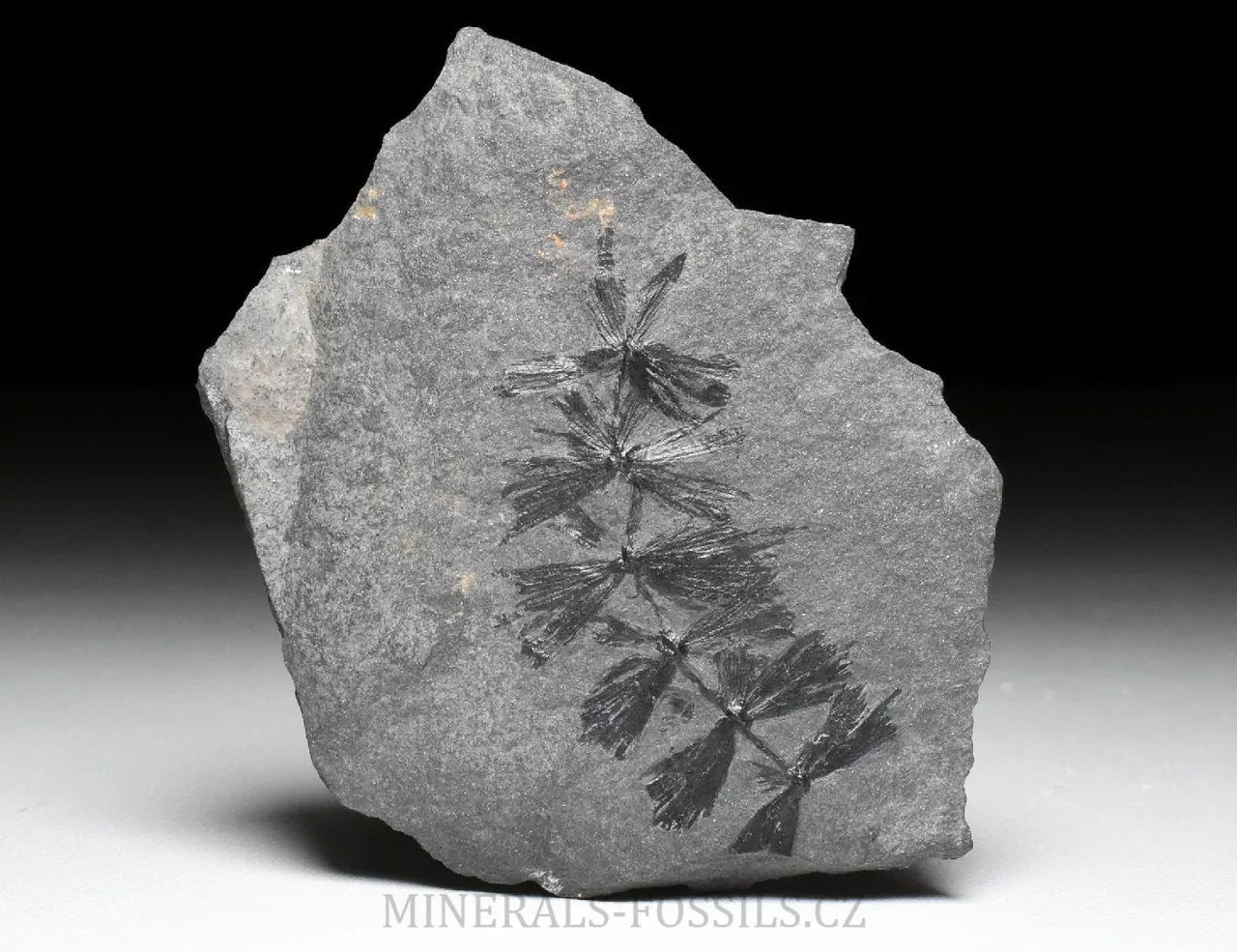 Zkamenělina popínavé přesličkovité liány z období karbonu. Přesné určení druhu je Sphenophyllum oblongifolium. Zkamenělina pochází z dnes již zaniklých uhelných dolů v Graissessac (centrální Francie). Tento kámen o rozměru 7 cm představuje tenkou destičku tzv. lupku (tmavá břidlici podobná hornina) ve které se zachovali prouhelněné otisky původních rostlin.